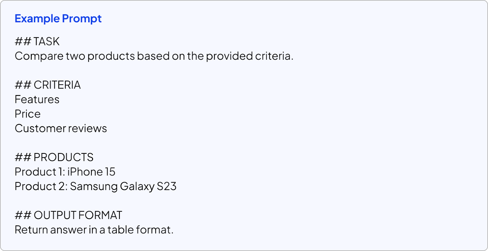 A well-organised report is much easier to follow than a wall of text—and the same principle applies here. Use tags, sections, delimiters, and line breaks, to make your request easier to understand.