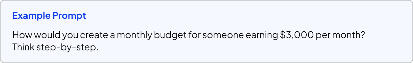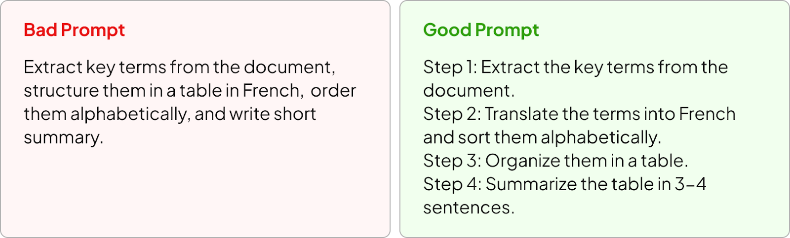 Big, complicated tasks can overwhelm anyone. Instead of trying to tackle everything at once, break the task into smaller, manageable steps. If the question is really detailed, you can even split it into separate prompts to keep things clear and focused!